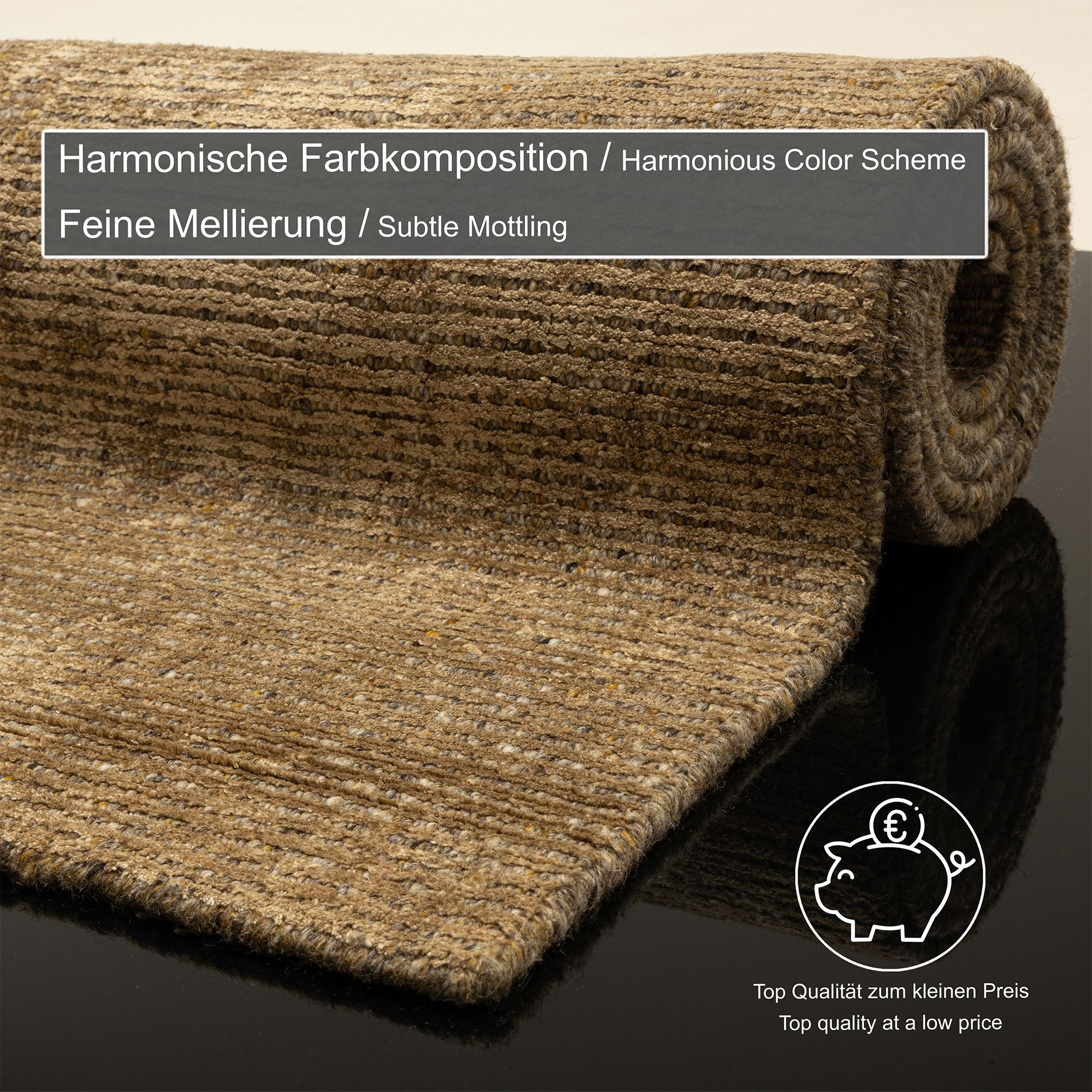Der handgefertigte Webteppich „Venus“ vereint stilvolle Eleganz mit luxuriöser Haptik. Gefertigt aus edler Viskose und hochwertiger Wolle, begeistert er mit einer exquisiten Hoch-Tief-Struktur, die dem Design eine besondere Tiefe verleiht. Sein sanfter Schimmer und die weiche Oberfläche sorgen für ein angenehmes Gefühl unter den Füßen, während die dezente Farbgebung eine mühelose Integration in jedes Raumkonzept ermöglicht. „Venus“ bringt zeitlose Schönheit und höchsten Komfort in Ihr Zuhause!