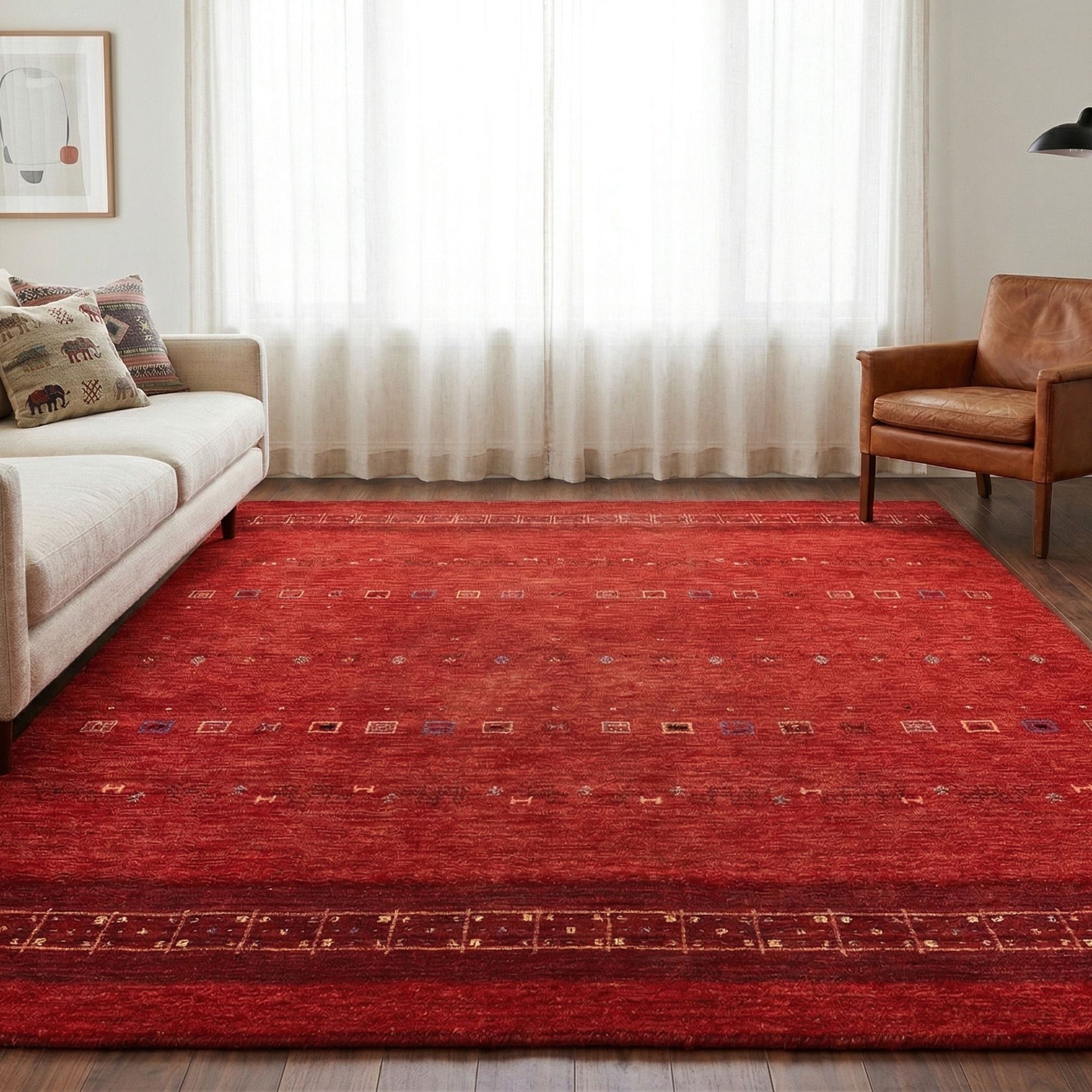Die "GABBEH ART" Teppiche sind in zwei faszinierenden Farbvarianten erhältlich, die Ihre Wohnräume in warmes, goldenes Licht tauchen oder mit einem Hauch von Rot verzaubern. Ob für Ihr Wohnzimmer, Schlafzimmer oder den Flur - die verschiedenen Größen passen sich harmonisch an jede Umgebung an.